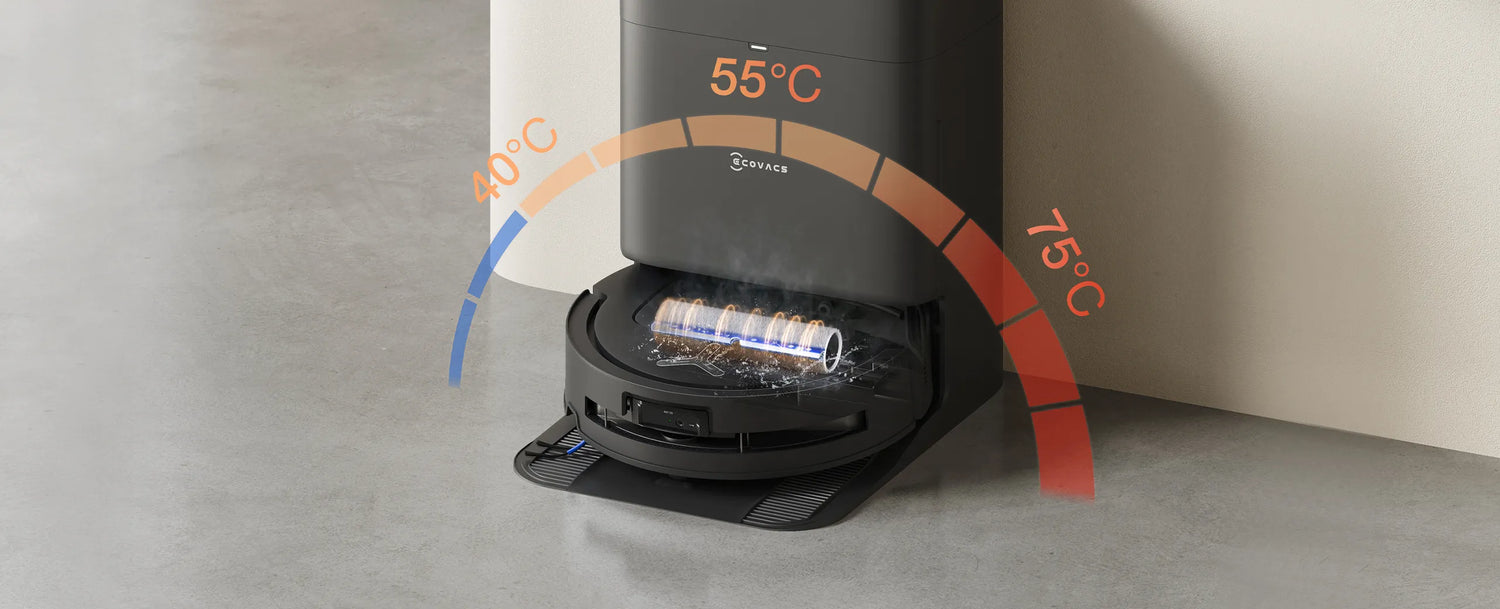 The 40-75Β°C temperature-controlled mop washing allows for automatic adjustment of mop washing temperature according to the room type and dirtiness level, while the rounds of washing can be tailored accordingly. This ensures the maximization of mop washing effects after cleaning any kinds of dirt, achieving a pristine result without any excessive cleaning.